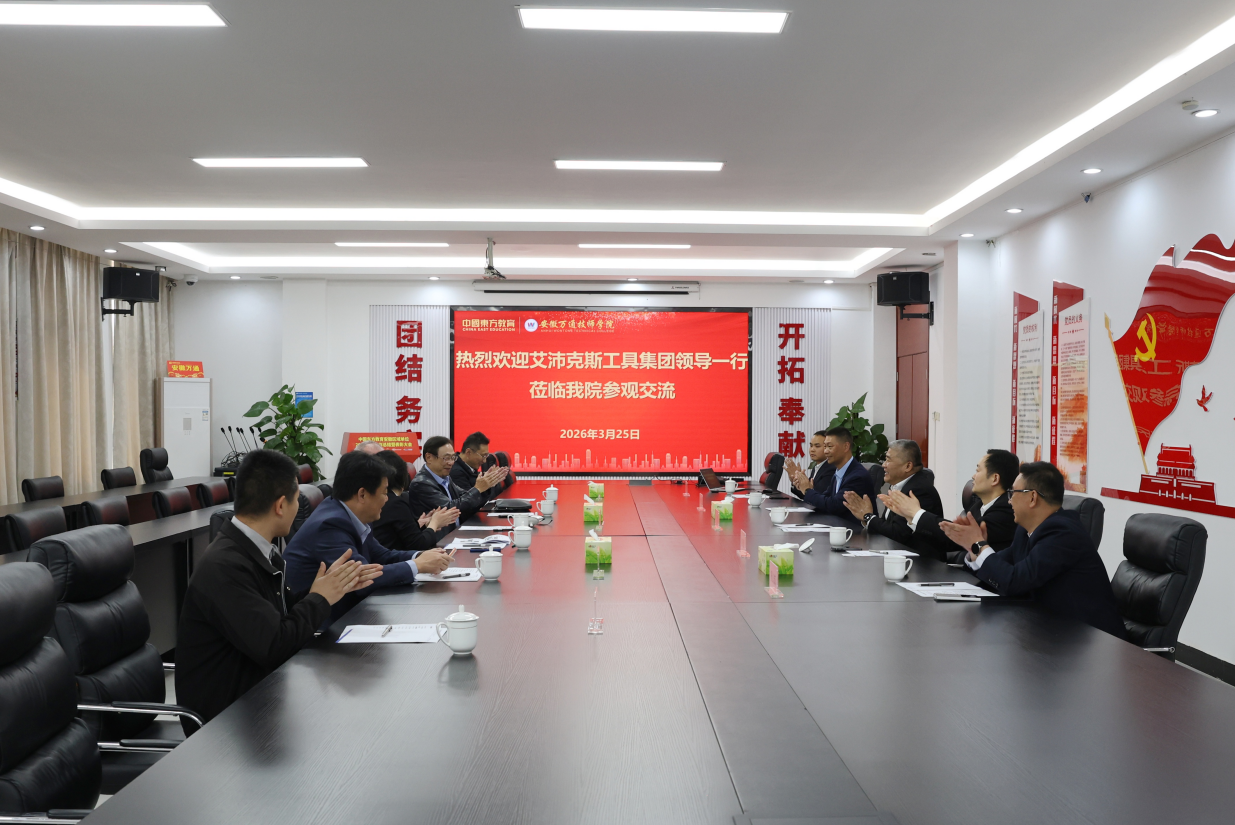 3月25日下午,艾沛克斯工具集团CEO Jim Roberts,亚太区总裁凌万权,Cleco中国区动力工具销售事业部总经理周颖,SATA世达中国区五金销售事业部副总经理费雪辉,SATA世达副总经理周敏等一行莅临万通汽车教育院校参观交流。中国东方教育集团汽车事业部总经理陶青,安徽万通技师学院院长陈应连等领导热情接待来访嘉宾,双方就深化校企合作、推动产教融合等议题展开了深入探讨,并达成多项合作共识,共同开启了校企合作的新篇章。